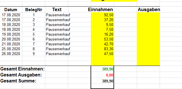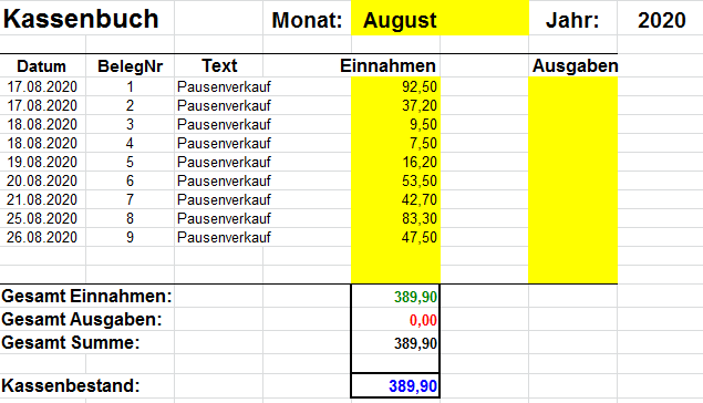 Im Moment beschäftigen wir uns hauptsächlich damit, dass eingenommene Geld zur Bank zu bringen und unsere Umsätze in einem Ordner und einer Exeltabelle zu dokumentieren.