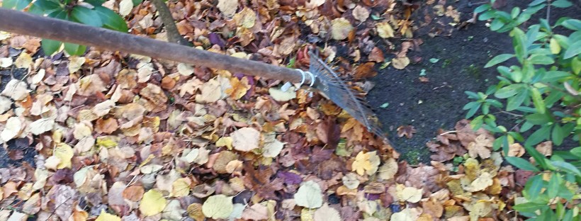 Das welke Laub wurde zusammen gefegt und ebenfalls auf dem Komposthaufen geworfen. Dort landete auch das Unkraut das mit einem Stecher ausgestochen wurde.
