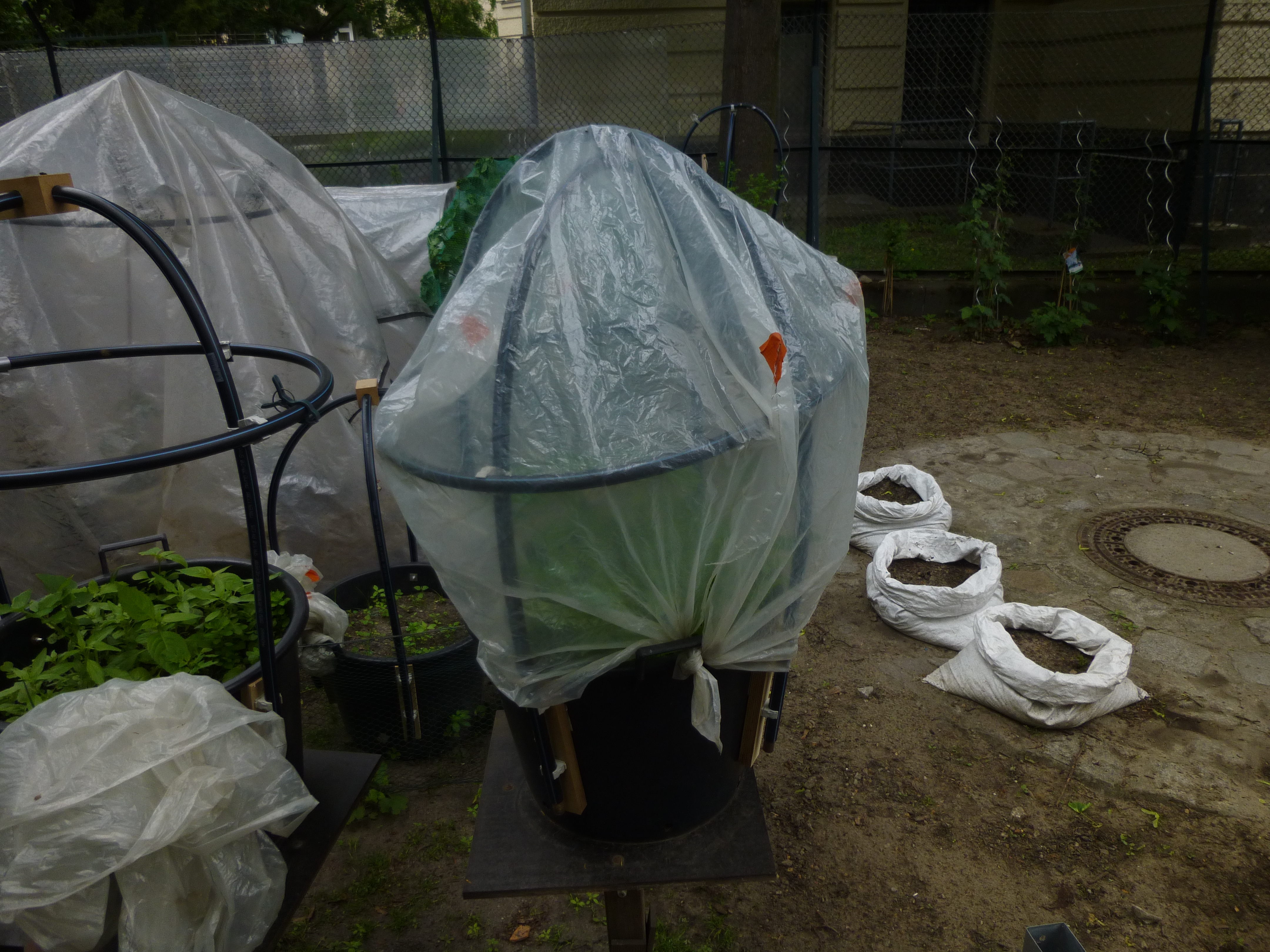 - Als letztes stülpten wir eine Plastikplane über das Gestell, damit ein Treibhauseffekt entstehen kann.